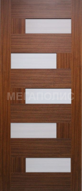 Дверь относится к профильным полотнам, так как состоит из отдельно изготовленных деталей, которые после резки в размер и фрезеровки, собираются в дверное полотно. По периметру каркаса полотно состоит из 2х стоек и 2х перемычек. Стойка и перемычка изготавливается из соснового срощенного бруса, с двух сторон оклеенного МДФ и окутанного пленкой ПВХ. Внутреннее наполнение полотна состоит из горизонтальных филенок идентичных каркасу, изготовлены из МДФ и окутанных ПВХ пленкой.