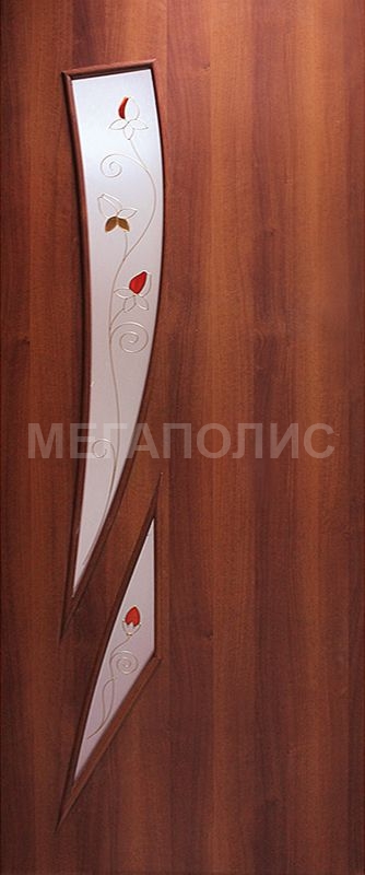 Каркас - брус сосновый срощеный (микрошип) Внешнее покрытие - хдф, облицованная финиш-пленкой с имитацией пород дерева Внутреннее наполнение - соты из картона специального Кромка полотна - меламиновая Штапик - мдф Стекло - стекло 4мм декорированное методом химического травления