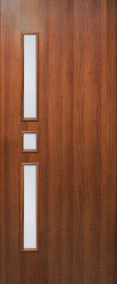 Двери ламинированные (двери МДФ) идеально подходят для различных учреждений. Их внешний вид варьируется от классического стиля до стиля модерн, а богатство расцветок позволяет выбрать оптимальный вариант, гармонирующий с цветом стен и мебели в помещении. Двери МДФ не требуют особого ухода, они просты в эксплуатации, а их поверхность защищена от повреждений. Это делает их очень популярными как в офисах, так и в квартирах. Дверное полотно «МДФ» состоит из: Каркас — брус сосновый срощеный (микрошип). Внешнее покрытие — мдф, облицованная финиш-пленкой с имитацией пород дерева. Внутреннее наполнение — соты из картона специального. Кромка полотна — меламиновая. Штапик — мдф.