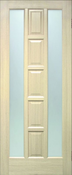 Дверь относится к профильным полотнам, так как состоит из отдельно изготовленных деталей, которые после резки в размер и фрезеровки, собираются в дверное полотно. По периметру каркаса полотно состоит из 2х стоек и 2х перемычек. Стойка и перемычка изготавливается из соснового срощенного бруса, с двух сторон оклеенного МДФ и окутанного пленкой ПВХ. Внутреннее наполнение полотна состоит из горизонтальных филенок идентичных каркасу, изготовлены из МДФ и окутанных ПВХ пленкой.