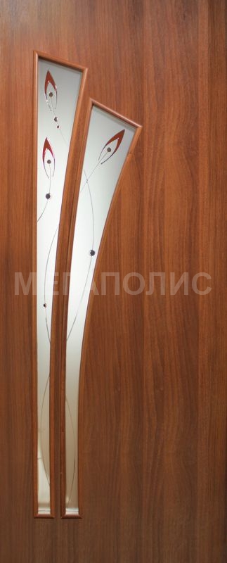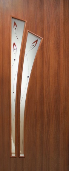 Двери ламинированные (двери МДФ) идеально подходят для различных учреждений. Их внешний вид варьируется от классического стиля до стиля модерн, а богатство расцветок позволяет выбрать оптимальный вариант, гармонирующий с цветом стен и мебели в помещении. Двери МДФ не требуют особого ухода, они просты в эксплуатации, а их поверхность защищена от повреждений. Это делает их очень популярными как в офисах, так и в квартирах. Дверное полотно «МДФ» состоит из: Каркас — брус сосновый срощеный (микрошип). Внешнее покрытие — мдф, облицованная финиш-пленкой с имитацией пород дерева. Внутреннее наполнение — соты из картона специального. Кромка полотна — меламиновая. Штапик — мдф.