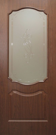Дверное полотно «ПВХ» состоит из: Каркаса (брус хвойных пород древесины, усиление под замок с 2х сторон) Сотового заполнения (полоски специального картона, склеенные между собой в виде сот) Облицовки каркаса – «скин» (плита ХДФ 3мм производства "Classique" (Румыния) ламинированная пленкой ПВХ с помощью вакуумного пресса) Кромочного материала – пленка ПВХ толщиной 0,5мм Стекло - сатин 4мм или сатин с полноцветной печатью Основные преимущества дверных полотен ламинированных пленкой ПВХ: Устойчивость к внешним механическим повреждениям (царапинам, сколам, ударам) Устойчивость к воздействию влаги Устойчивость к воздействию агрессивных сред Устойчивость к воздействию солнечных лучей Легко очищаются от различных видов загрязнений (можно мыть всеми известными моющими средствами) Пленка ПВХ удачно  имитирует древесную поверхность, что предает дверному полотну эффект натуральности